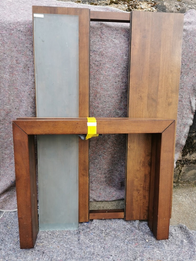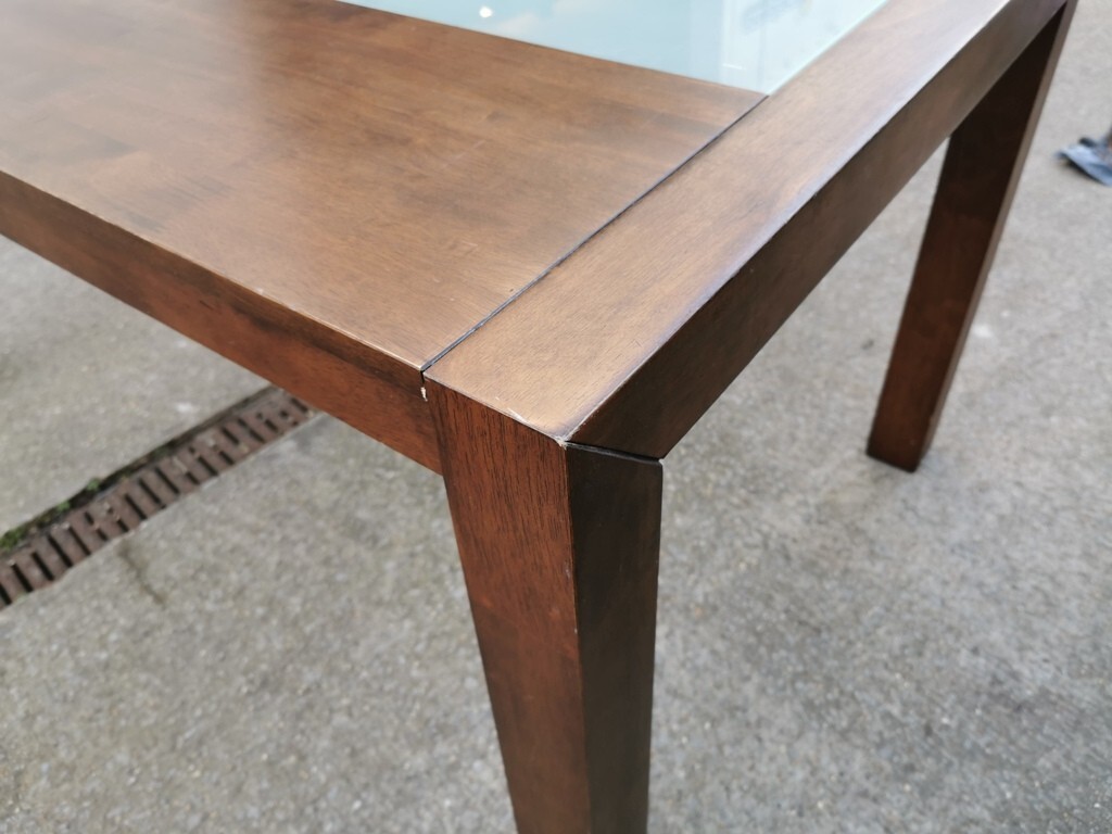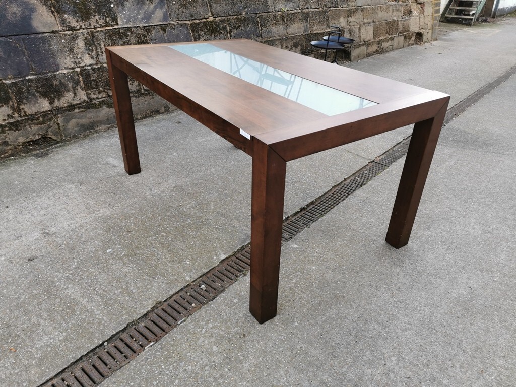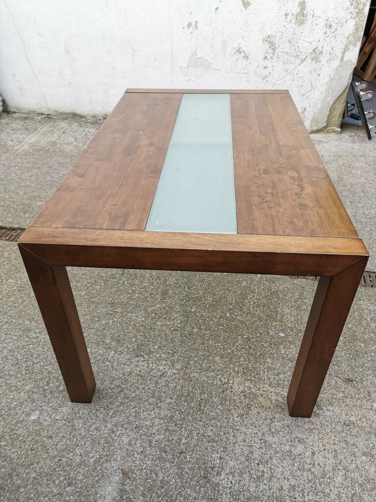 Solid Wood Dining Table with Central Glass Panel – Contemporary Rectangular Design | Dismantled for Easy Transport