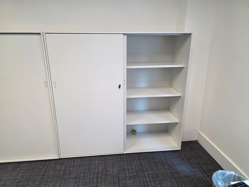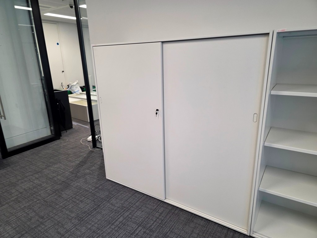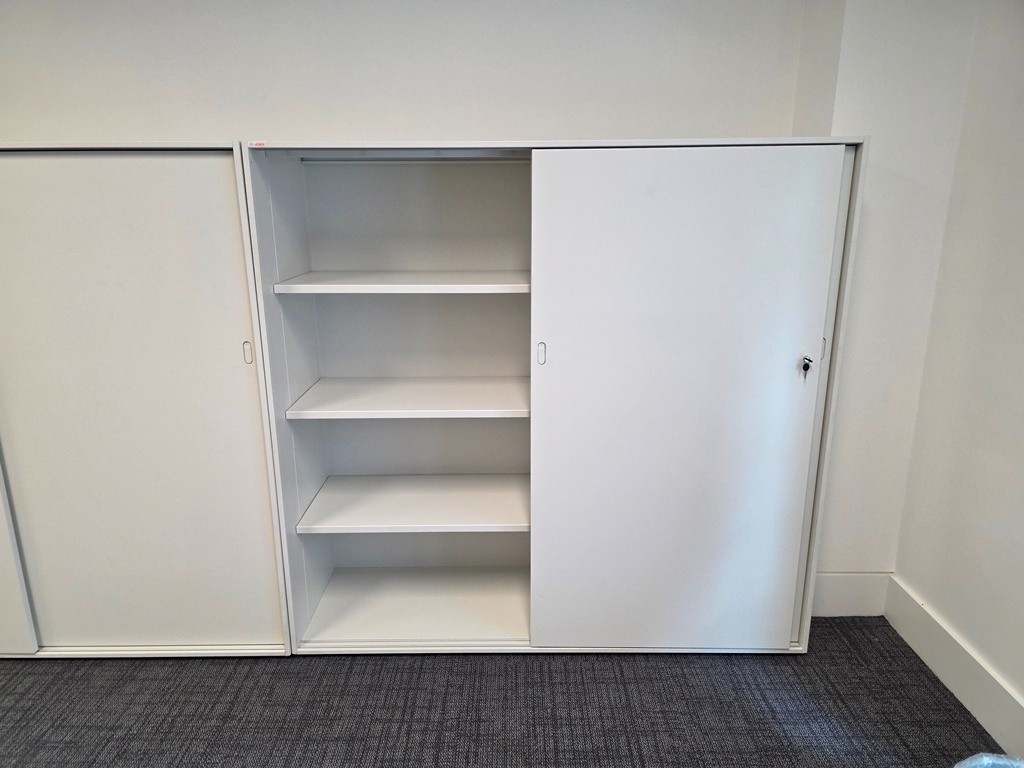 Sliding-Door Office Storage Cupboard – White – Lockable – 1550h × 1610w × 500d mm