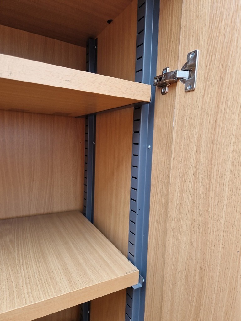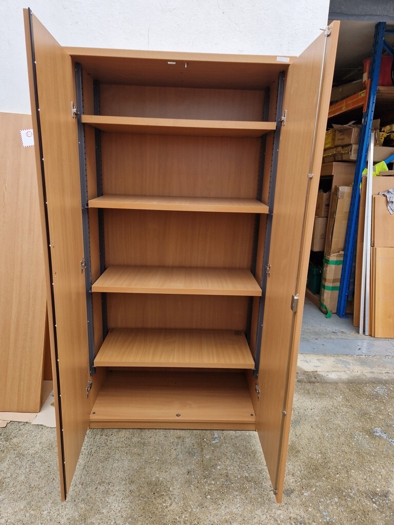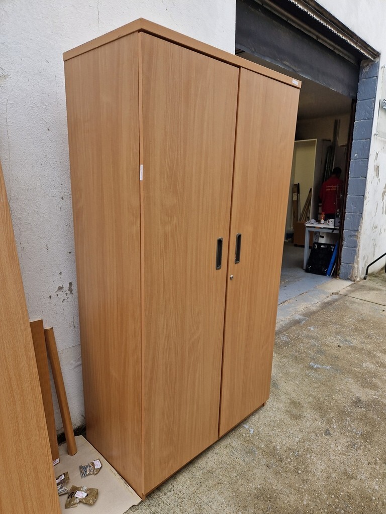 Used Two-Door Office Storage Cupboard – Beech – Lockable – 1850h × 950w × 500d mm
