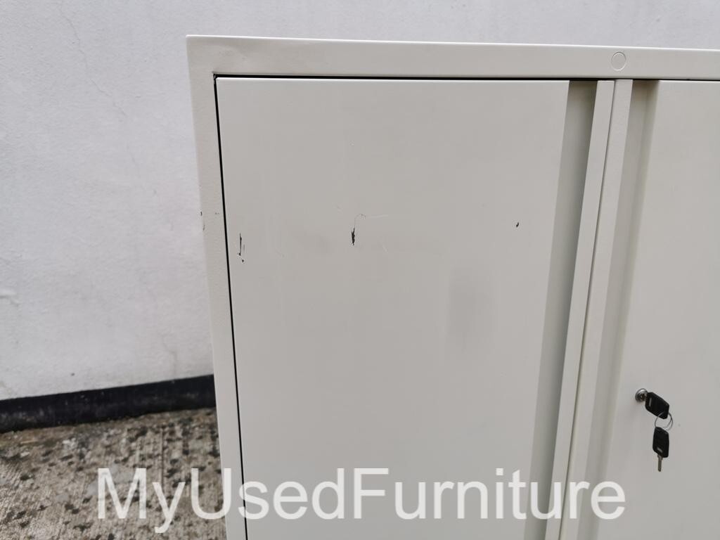 A practical, space-efficient steel storage cupboard suitable for everyday office use.