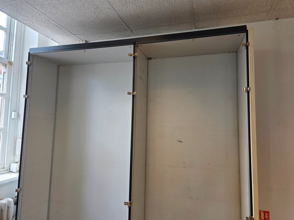 Offices, schools, reception areas and back-of-house spaces needing high-capacity, lockable storage with a compact sliding-door footprint.