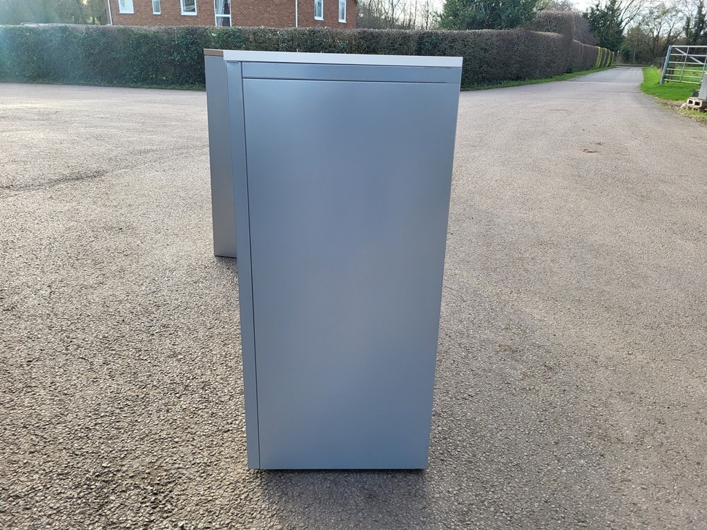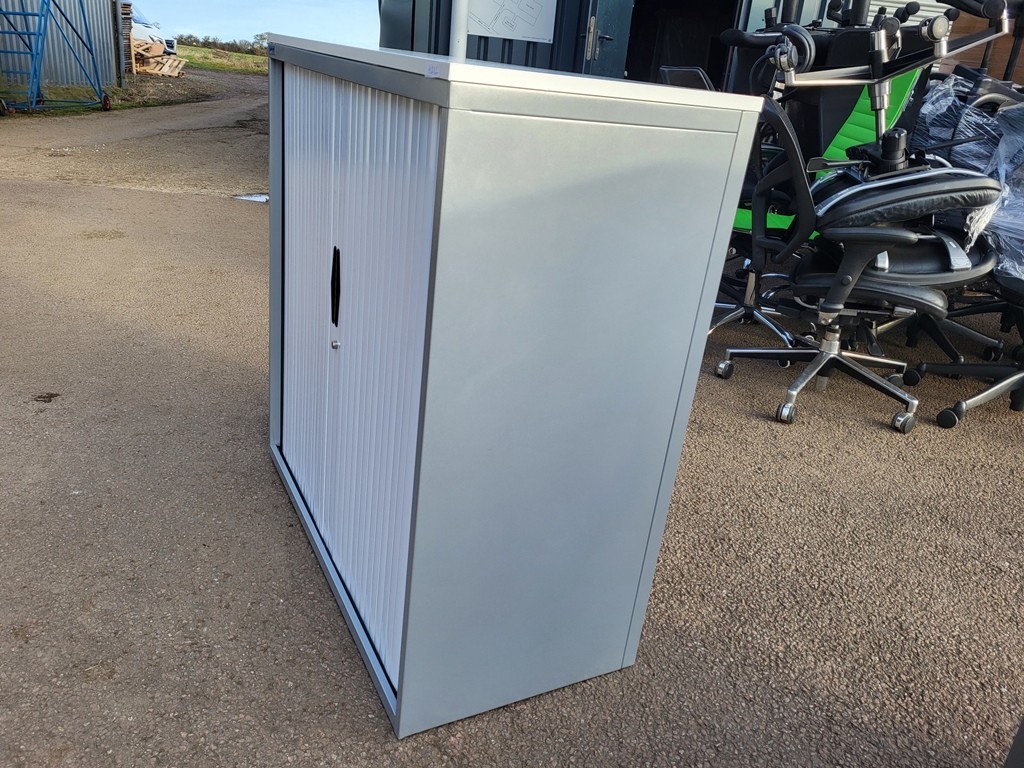 Medium Steel Storage Tambour Cupboard — Grey Carcass, White Doors, Lockable, Optional White Top