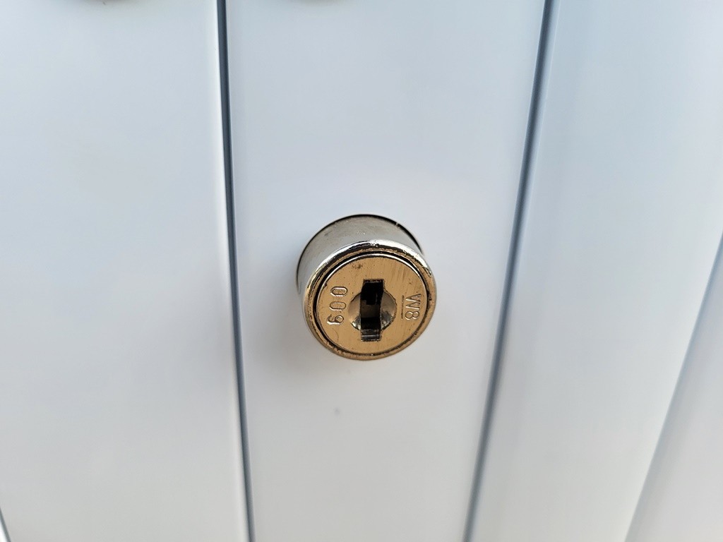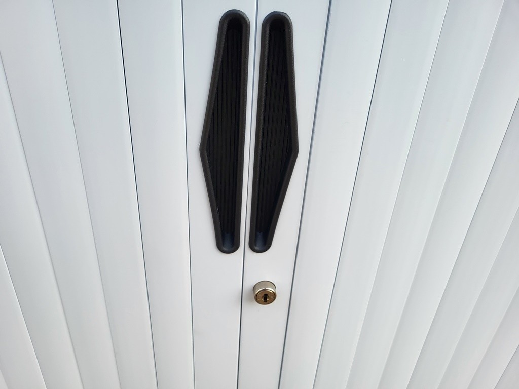 Lockable tambour doors — supplied with 1 key (spare keys typically available using the lock code, approx. £3)
