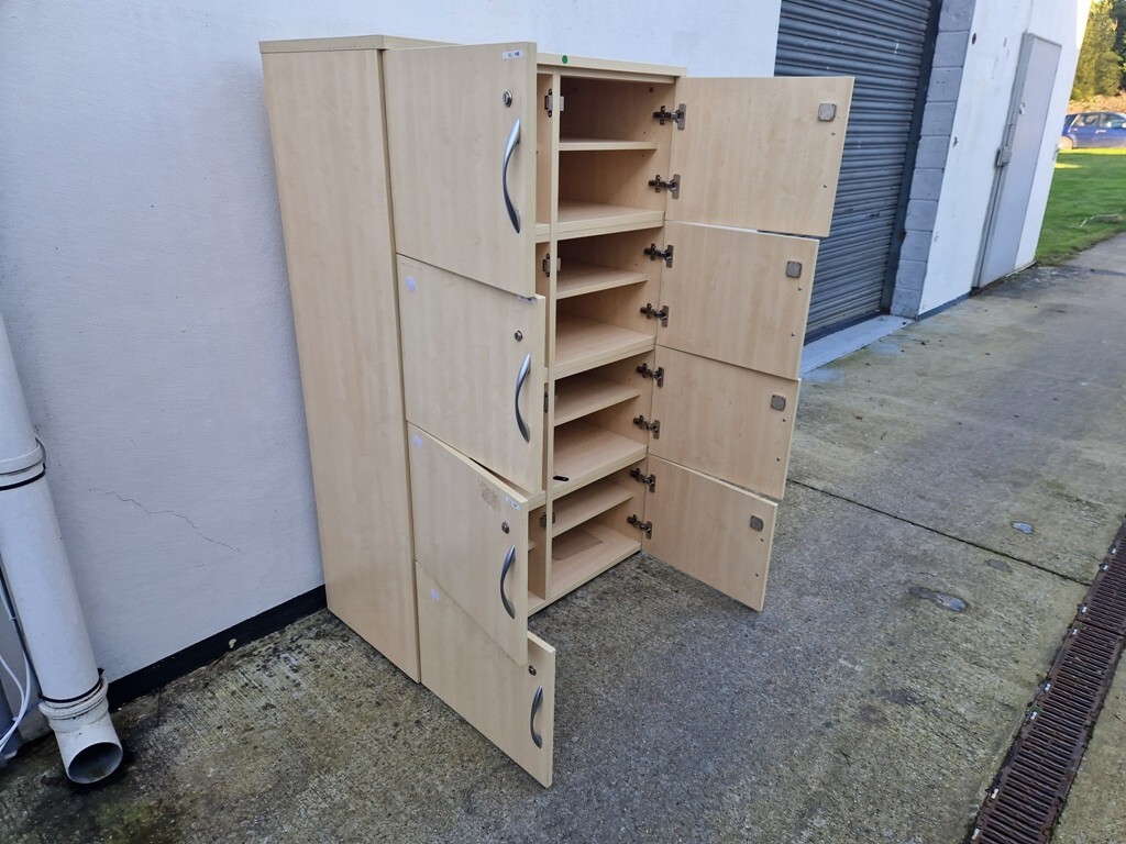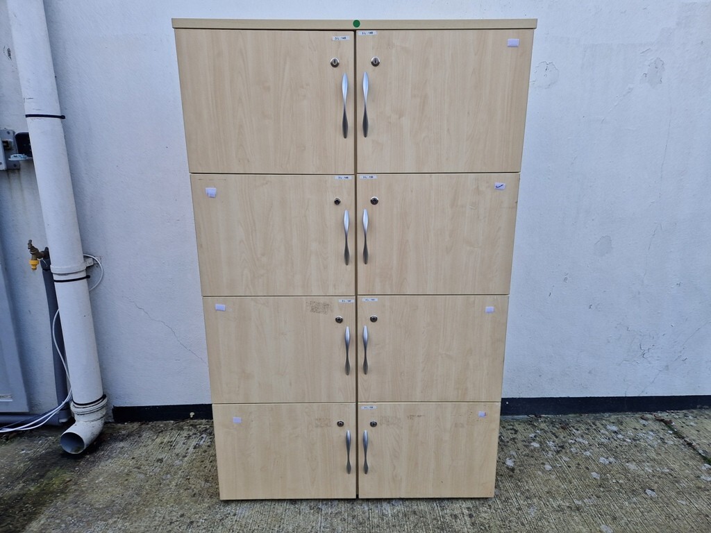 Upgrade your workspace storage with these 8-door maple wooden lockers — ideal for office staff lockers, personal belongings, or laptop storage. Wooden/laminate lockers offer a warmer, professional look that blends with modern offices, receptions and leisure spaces, while providing secure, multi-compartment storage in a compact footprint.