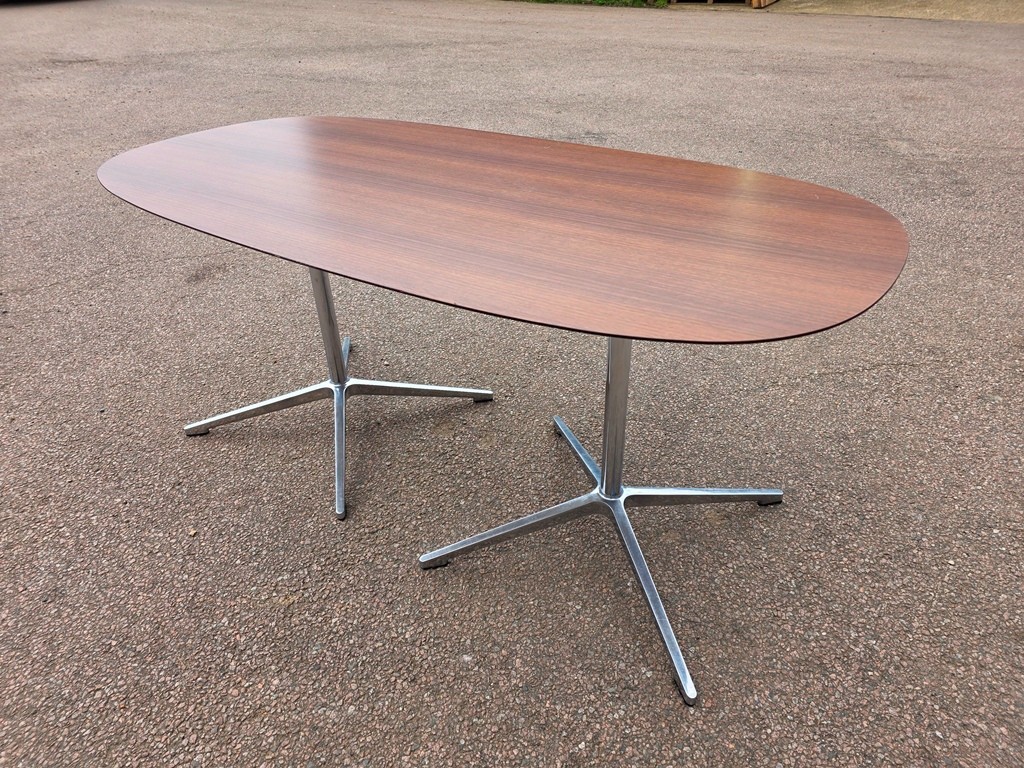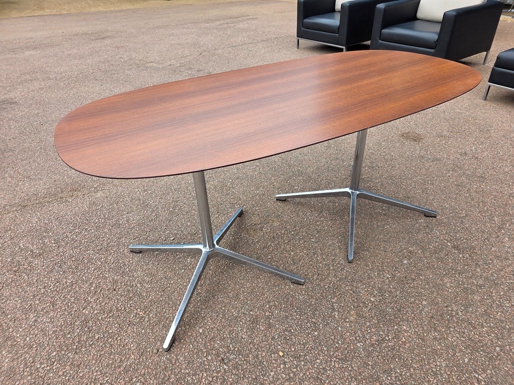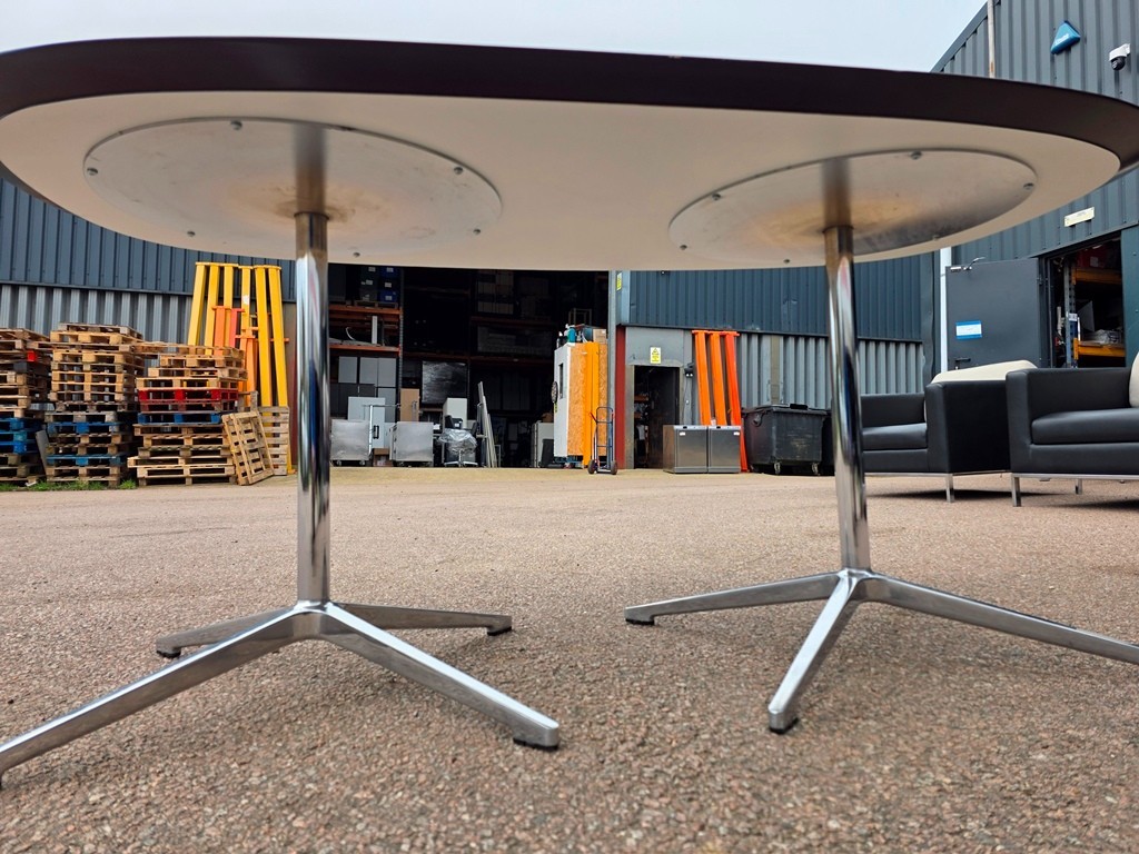 🪵 Walnut D-End Meeting / Lounge Table – Chrome & Aluminium Pedestal Base