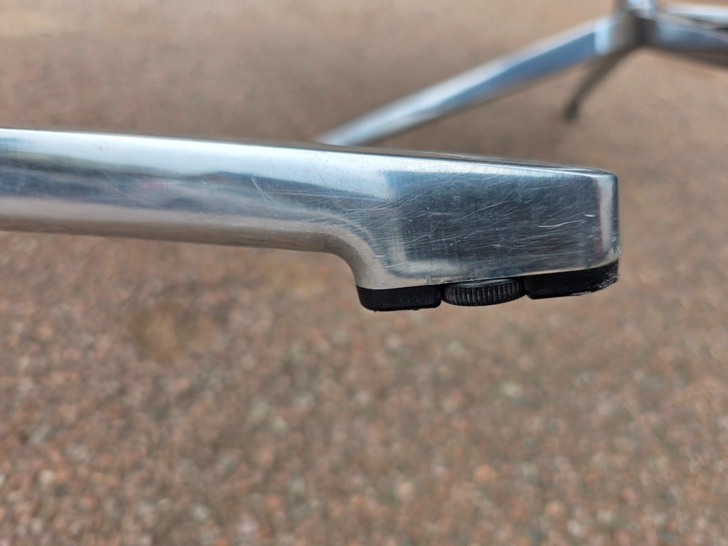 - Chrome and aluminium pedestal base