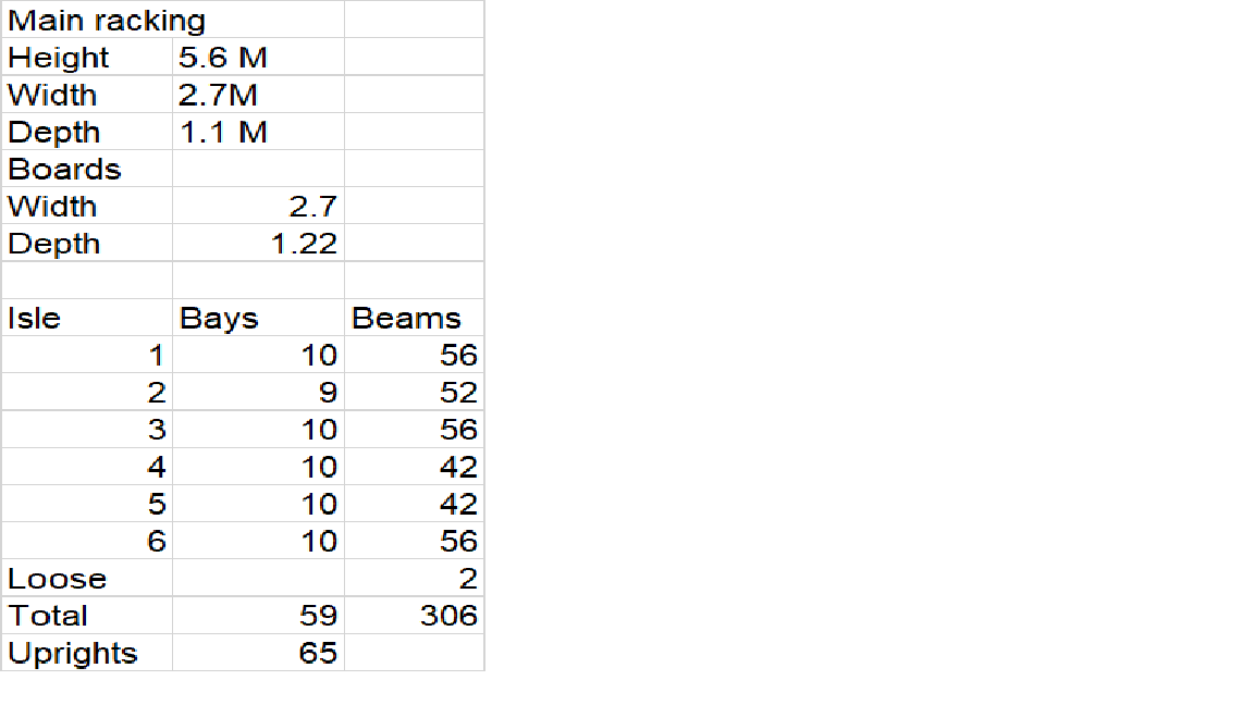 🧱 Uprights: 560cm (Height) x 110cm (Depth)