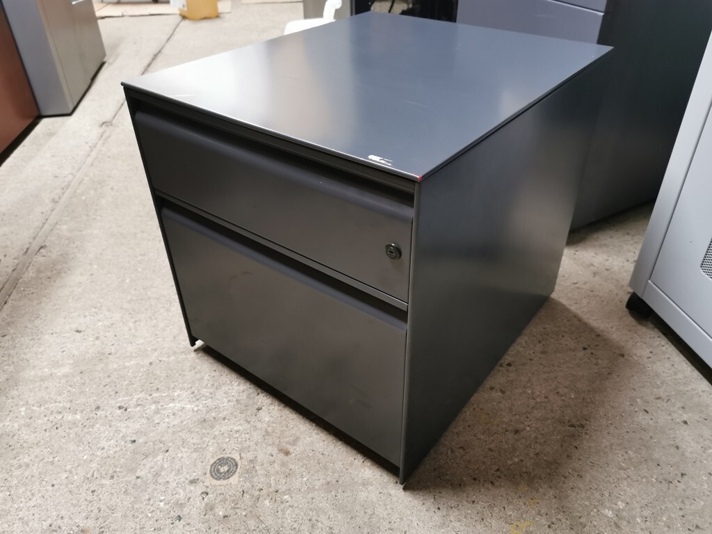 - 1 × Mobile steel 2‑drawer pedestal cabinet (lockable – no keys supplied; replacement keys can be ordered online for approx. £3 each via FastKeys using the lock code)