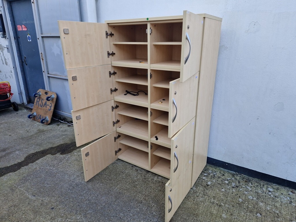 🔐 8-Door Maple Wooden Locker Unit – Lockable Office Staff / Laptop Storage
